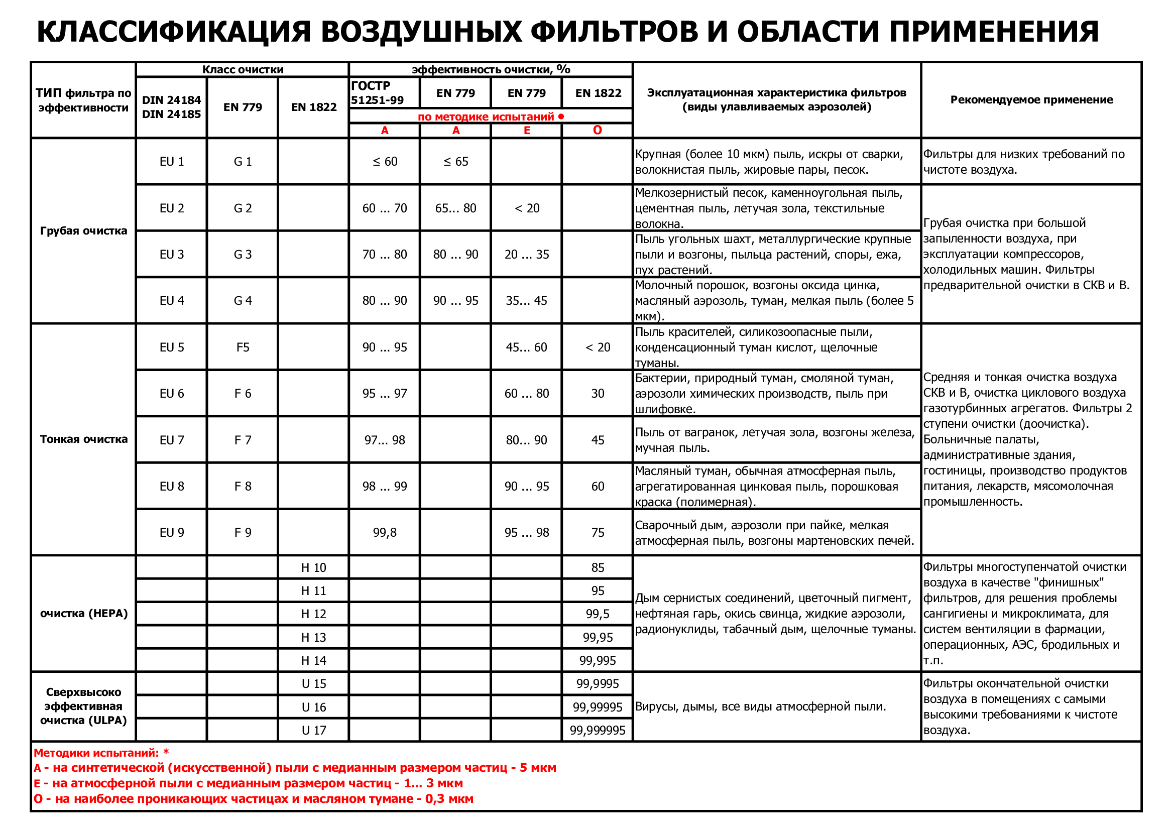 1. Классификация по классу очистки (ГОСТ Р ЕН 779-2014)