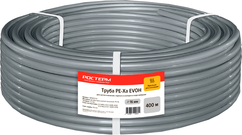 • наружный слой EVOH (кислородозащитный барьер EVOH) предотвращает диффузию кислорода, защищая стальные элементы системы от преждевременной коррозии