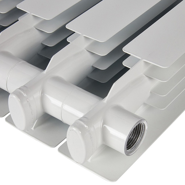 В отверстиях коллекторов выполнена трубная резьба размером G 1" (с одной стороны правая, а с другой – левая). Резьба предназначена для соединения секций между собой в радиаторы различной длины с помощью стальных резьбовых ниппелей. Геометрия ниппельных соединений и параметры прокладок из безасбестового материала гарантируют надежную герметичность собранного радиатора.