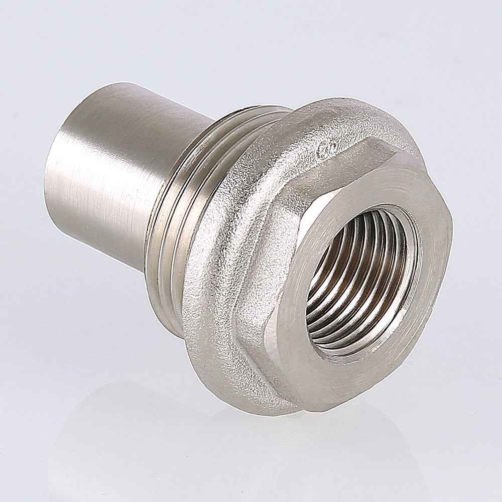 Удлинитель потока VT.503 представляет собой латунную никелированную радиаторную футорку, дополненную патрубком с внутренней треугольной резьбой крупного шага. В этот патрубок ввинчивается отрезок металлополимерной трубы с наружным диаметром 16 мм. Удлинитель потока устанавливается в обратный коллектор радиатора, тем самым создавая «псевдодиагональное» одностороннее подключение. Изделие выпускается в правом (D) и левом (S) исполнении для подключения труб или арматуры c диаметром условного прохода 1/2 и 3/4"