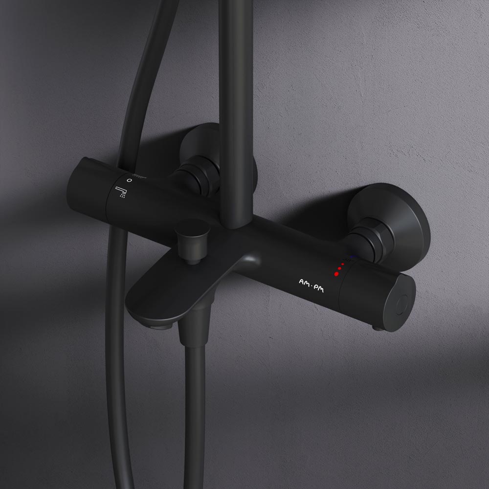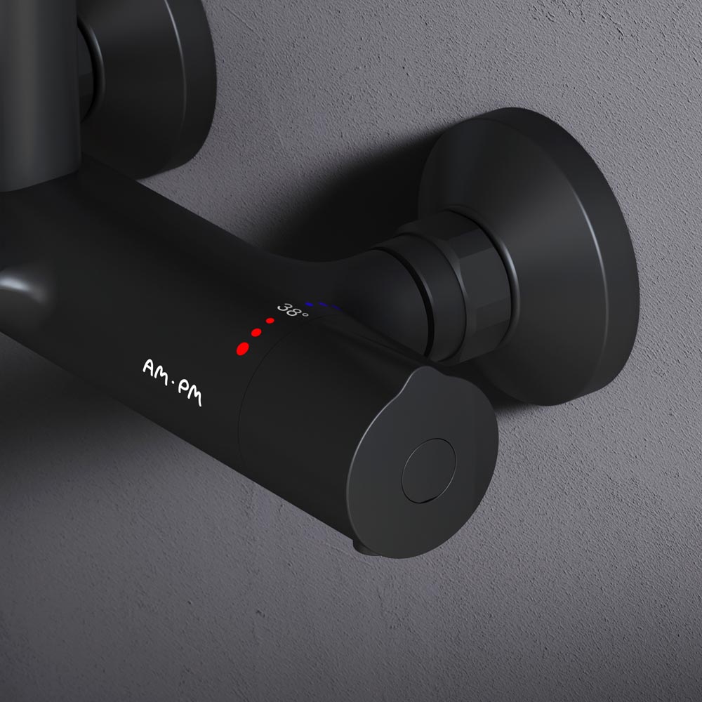 Смеситель для ванны и душа с термостатом: термостатический картридж с высокочувствительным термоэлементом стопором безопасности на 38 градусов быстрой реакцией на изменения температуры или давления надежно защищает от ожога даже при внезапном отключении холодной воды.