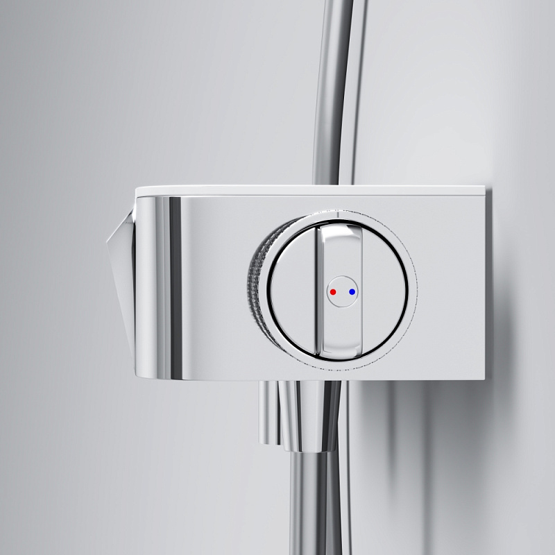 Интуитивно понятное управление: всего одна удобная ручка для настройки температуры и потока воды. Благодаря специально спроектированной эргономичной ручке вы можете управлять душевым смесителем даже с мыльными руками.