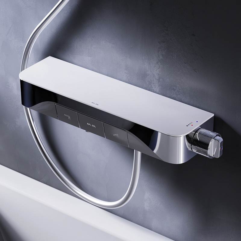 Еще больше полезного пространства: смеситель выполнен в виде вместительной полочки. Внушительный размер полки (40 см) позволяет хранить все любимые средства под рукой а эстетичный силуэт станет настоящим украшением современной ванной комнаты.