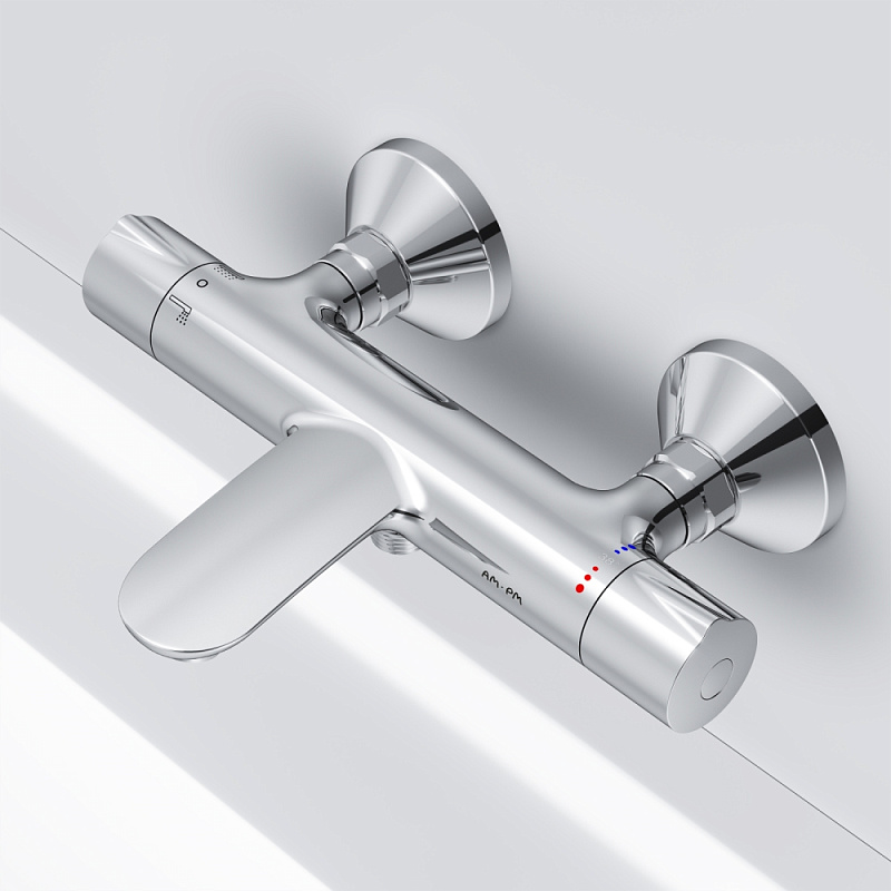 Передовые технологии: термостатический картридж с высокочувствительным термоэлементом и быстрой реакцией на изменения температуры или давления в водопроводной сети надежно защищает от ожога даже при внезапном отключении холодной воды.
