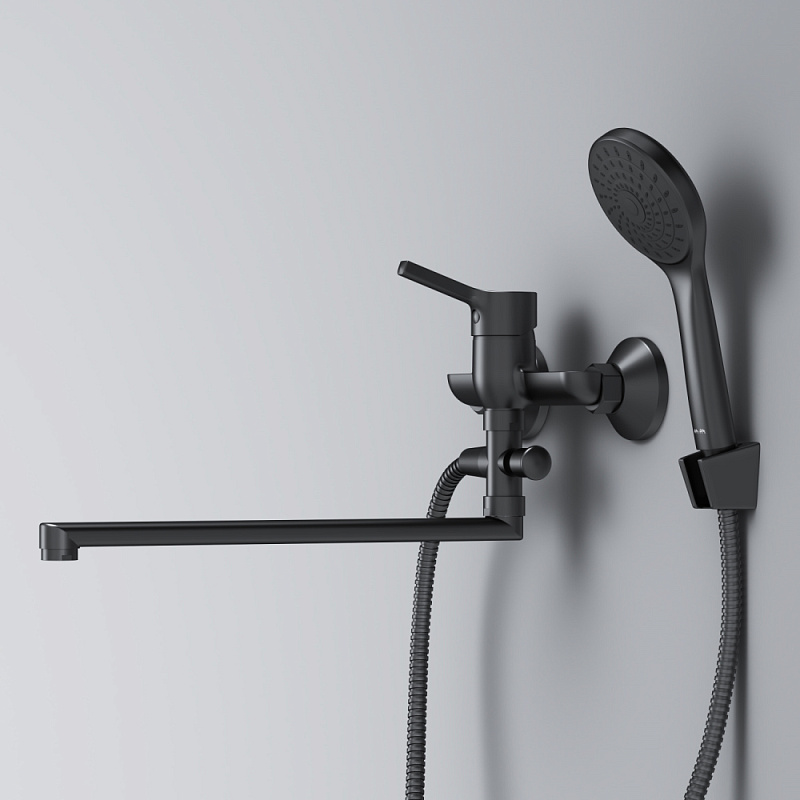 Универсальный длинный излив позволяет использовать смеситель как для ванны так и для рядом стоящей раковины. Функциональный держатель для ручного душа на два положения добавит удобства использования. Душевой шланг длиной 150 см позволит наслаждаться душем даже высокому человеку.