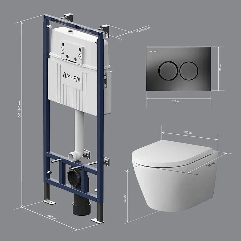 Выдерживает нагрузку до 400 кг. Подходит для унитазов любых размеров. Армированный шланг подачи воды двойная прокладка слива и подачи воды. В комплекте механическая двухрежимная клавиша из ABS пластика в цвете черный матовый. Подключение воды сзади сверху.