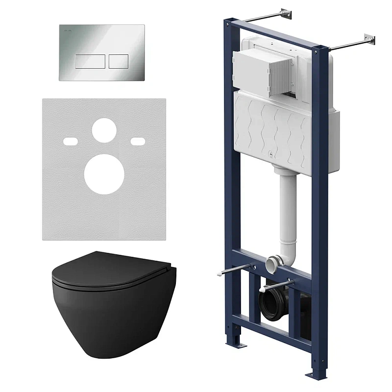 Укомплектован пневматической клавишей в цвете глянцевый хром. В комплекте все необходимые патрубки и крепления а также прокладка между унитазом и стеной - звукоизоляция.